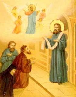 25 ноября 1825 года Матерь Божия вместе с празднуемыми в этот день двумя святителями явилась в сонном видении старцу и повелела ему выйти из затвора и принимать у себя немощные души человеческие, требующие наставления, утешения, руководства и исцеления. Благословившись у настоятеля на изменение образа жизни, преподобный открыл двери своей келии для всех.